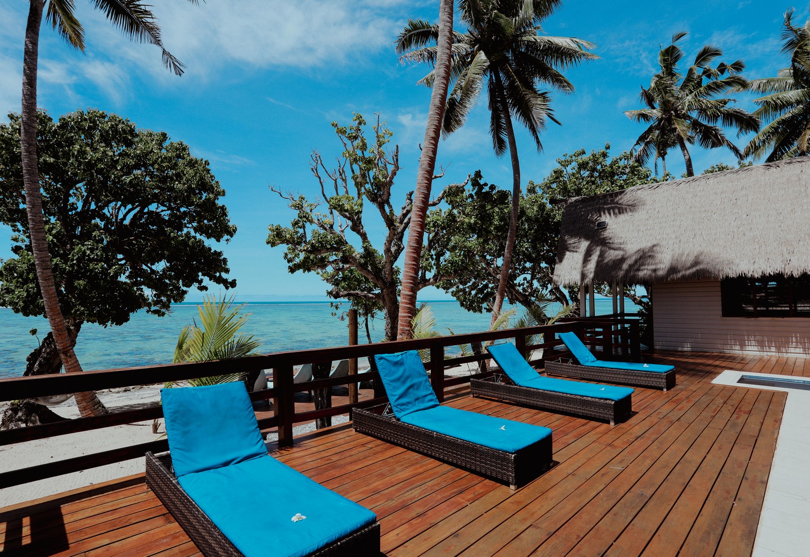 Step out from the bures and main house into your private outdoor sanctuary, where the pool sits nestled among lush tropical gardens and traditional thatched bures, just moments from the ocean.